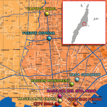 HERITAGE OF CEBU MONUMENT - Colon Street This monument is the work of national artist Edgardo Castrillo showcasing the important and symbolic events in the history of Cebu dating back to the time of Rajah Humabon to the more recent beatification of Cebuano martyr Pedro Calungsod. |